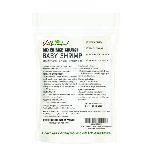BABY SHRIMP CRISPY RICE VIETFARMFOOD: Savory, Aromatic & Crunchy – Ready to Enjoy, Authentic Seafood Snack