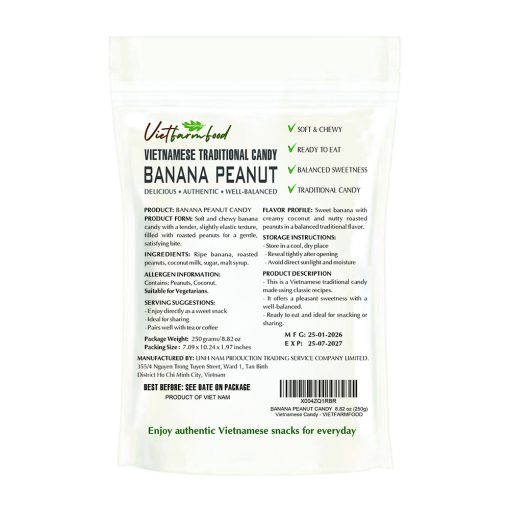 BANANA PEANUT CANDY 8.82 Oz (250g) VIETFARMFOOD – Soft Chewy Asian Snack, Naturally Fragrant, Made in Vietnam