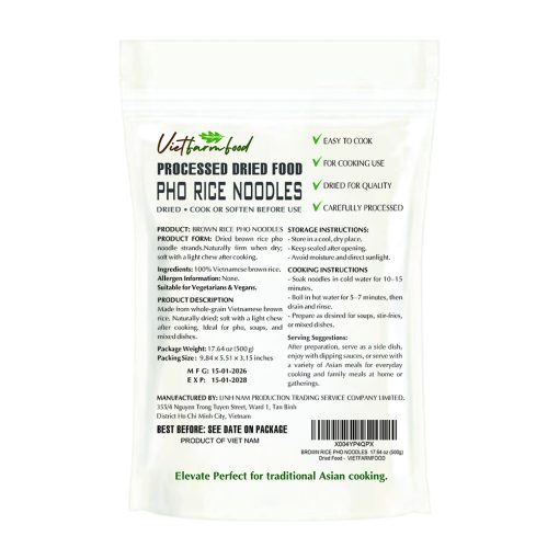 BROWN RICE PHO NOODLES VIETFARMFOOD – Traditional Dried Vietnamese Whole-Grain Rice Sticks – Soft and Tender Texture