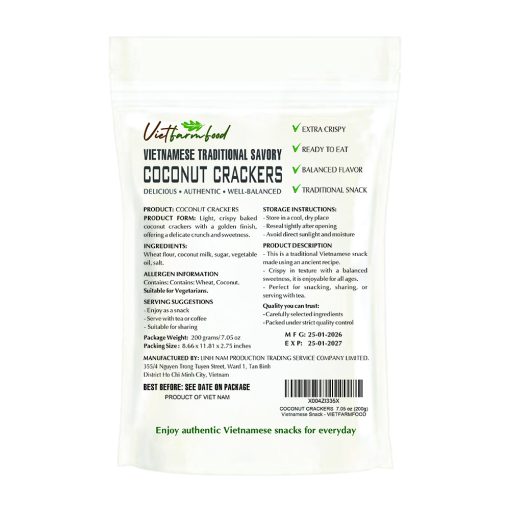 RICH COCONUT AROMA: Infused with real coconut milk and premium wheat, these crackers deliver a fragrant, toasted aroma that brings a piece of Vietnam’s tropical heritage to your home.