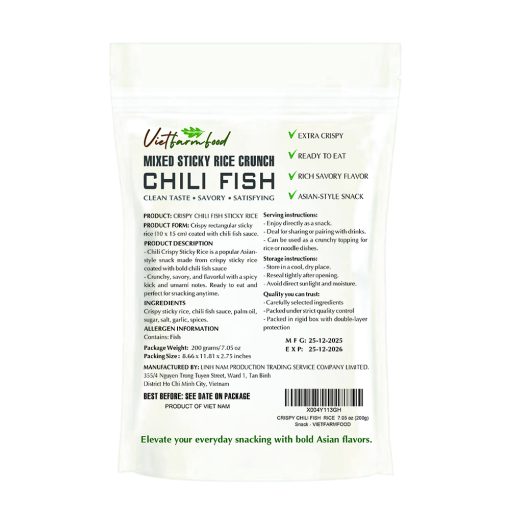 CRISPY CHILI FISH RICE VIETFARMFOOD: Savory & Spicy – Ready to Enjoy, Gourmet Snack for Parties and Daily Enjoyment