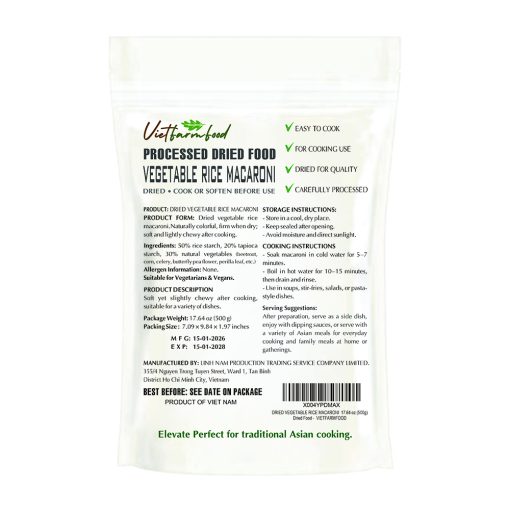 DRIED VEGETABLE RICE MACARONI VIETFARMFOOD – Traditional Dried Vietnamese Rice Pasta – Naturally Colorful and Slightly Chewy