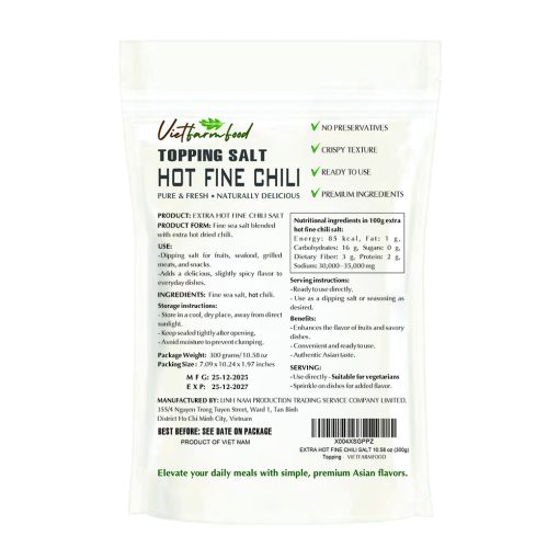 EXTRA HOT FINE CHILI SALT VIETFARMFOOD: Savory & Spicy – Ready to Enjoy, Gourmet Topping for Fruits, Seasoning, and Seafood