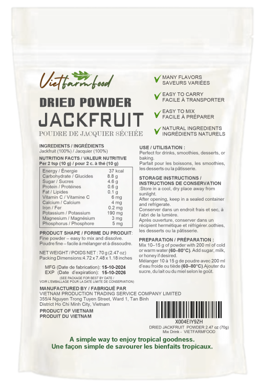JACKFRUIT POWDER 2.47 oz (70g) VIETFARMFOOD: Pure freeze-dried fruit powder, made from real fruit with no added sugar – Perfect for daily nutrition to keep your body full of vitality.