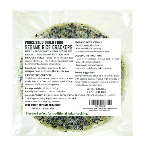 RAW SESAME RICE CRACKERS VIETFARMFOOD – Traditional Aromatic Vietnamese Crackers – Grill Before Use for Crispy Texture