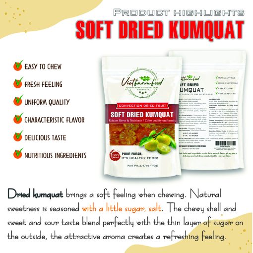 SOFT DRIED KUMQUAT 5.29oz (150g) VIETFARMFOOD: Convection dried fruit with a little sugar, salt, natural sweetness, soft when chewed. Suitable for snack, healthy dessert for all ages