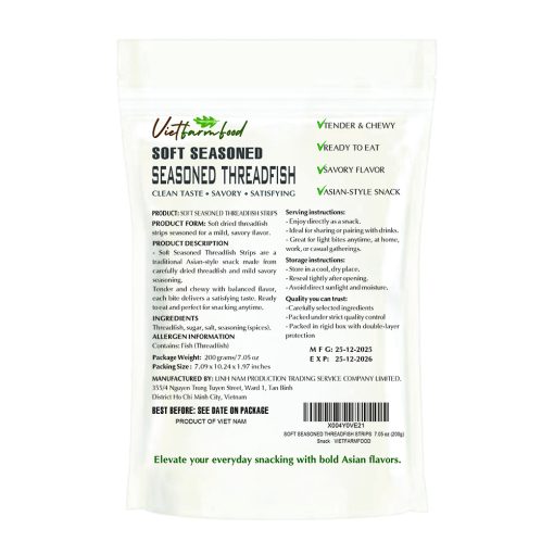 SOFT SEASONED THREADFISH STRIPS VIETFARMFOOD: Savory & Tender – Ready to Enjoy, Gourmet Snack for Parties and Daily Enjoyment