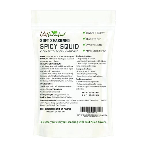 SOFT SPICY SEASONED SQUID VIETFARMFOOD: Savory & Spicy – Ready to Enjoy, Gourmet Snack for Parties and Daily Enjoyment